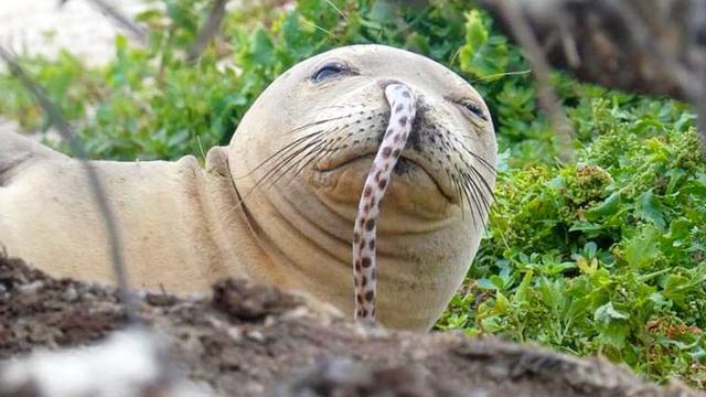 Saat Belut Tersangkut Di Hidung Anjing Laut Hawaiian Monk Halaman All Kompas Com